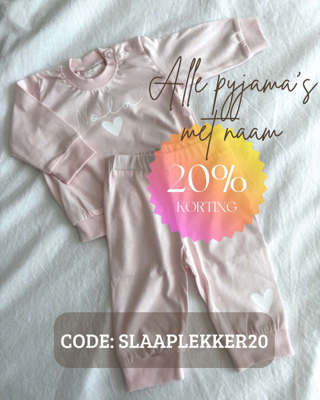 Je shopt alle gepersonaliseerde pyjama’s nu tijdelijk met 20% korting! Vul de kortingscode in bij het afrekenen en de korting wordt verrekend.